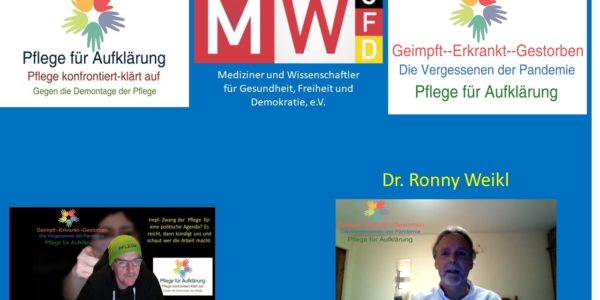 Mehrfach beobachtete frühzeitige Abgänge des Fötus. Kein Fruchtwasser, Nicht Bildung des Fötus, unerklärliche Tumorbildungen bei älteren Patientinnen usw. Dr. Ronny Weikl , Gynäkologe und Vereinskollege aus dem MWGFD berichtet uns hier einen kurzen Einblick in seine Beobachtungen in einigen Fällen aus seiner täglichen Arbeit. Wir rufen alle Kollegen Gynäkologen auf sich zu trauen über ihre Erfahrungen und Beobachtungen zu berichten. Es geht vor allem darum dass wir, Pflege und Ärzte, Hebammen und alle die im Alltag im Gesundheitswesen im kausalen und zeitlichen Kontext der Covid- Impfung Probleme und Komplikationen beobachten davon berichten. Wir brauchen –wie wir es eigentlich gewohnt sind–einen fachlichen Diskurs. Die Impfpflicht hat keine fachliche Berechtigung, sondern ist vielmehr ein potentielles Todesurteil für viele Kinder und Erwachsene die hier gezwungen werden ein gefährliches Medikament zu nehmen, dessen Schutz immer fraglicher wird und dessen Schaden–Nutzen Risiko in keinem Verhältnis steht. Meldet euch unter unserer Mail Adresse info@pflegefueraufklaerung.de Helft mit die FAKTEN an die Öffentlichkeit zu bringen um einen öffentlichen Diskurs zu erreichen und die Lügen der Politiker zu offenbaren, die mehr ihren lobbyistischen Interessen verpflichtet sind als dem Wohl der Bürger die sie gewählt haben. LAUTERBACH UNDE CO SIND NICHT UNSERE ERZIEHUNGSBERECHTIGTEEN… und sie sind keine Experten, wir sind die Experten die jeden Tag Patienten versorgen und täglich sehen was wirklich am Bett läuft Um Covid-19 Impf- Komplikationen als solche auch zu erkennen ist es wichtig, dass man genau hinschaut, mit dem Patienten die richtigen anamnestischen Gespräche führt und Gesicht zeigt diese Fakten auch in den offenen Diskurs zu stellen. Solche Fälle müssen auch gemeldet werden. Wir haben hier die Verantwortung, wir sind nicht den Politikern, die die Menschen vorsätzlich belügen, verpflichtet. Ihre Impf-Lügen sind lange schon widerlegt. Wer unsere Arbeit unterstützen möchte—ein Click auf das Logo hilft uns sehr